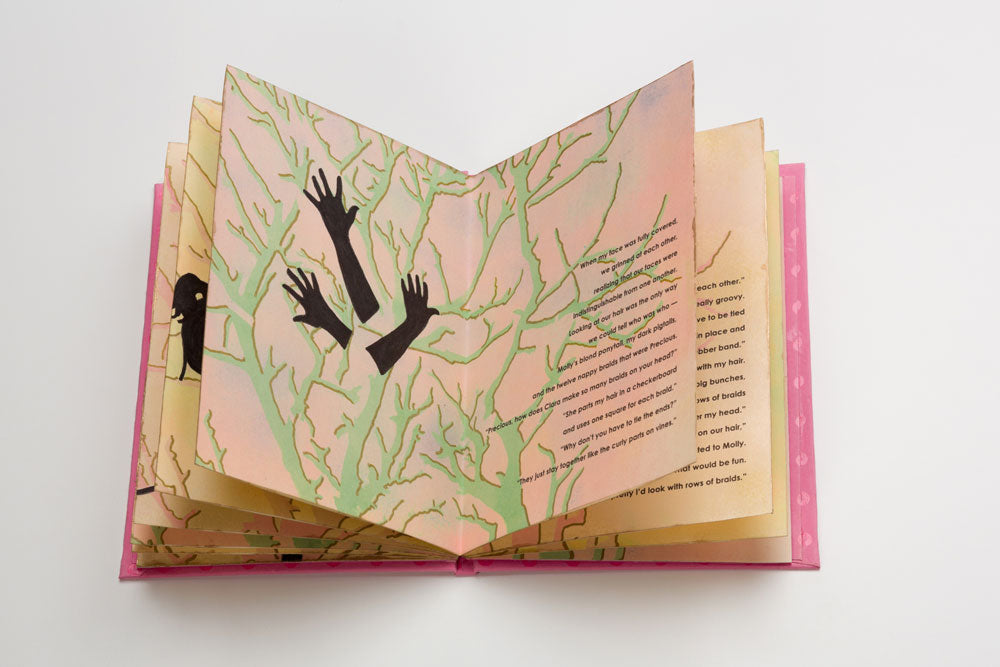 | Medium / Materials | Original book created with acrylic paint, pochoir, hand-drawn embellishments |